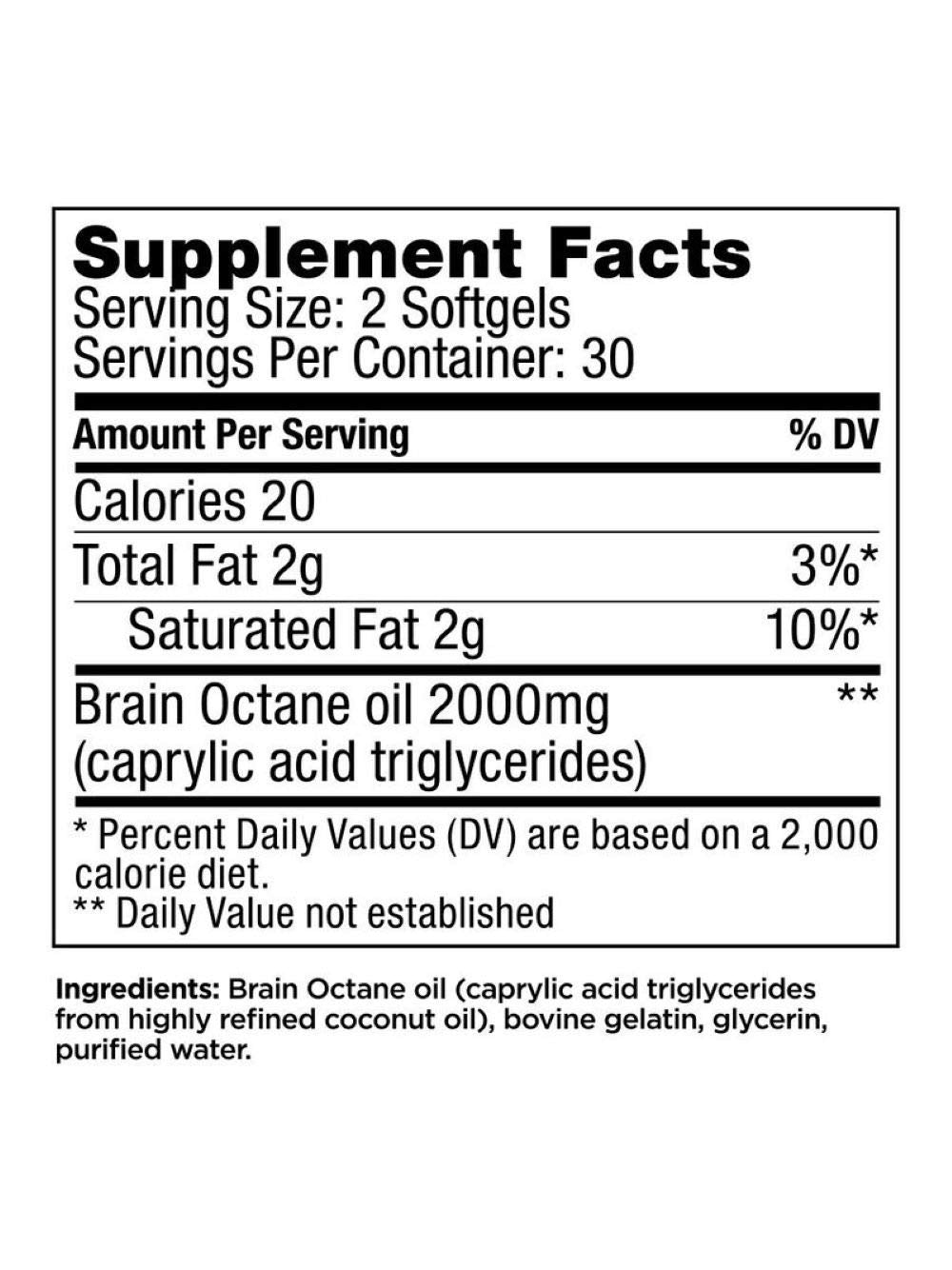 - 由 Brain Octane C8 MCT 油製成,來自 100% 純椰子油蒸餾而成的高品質脂肪