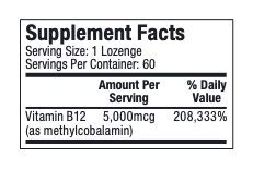 | 維生素 B12(作為甲基鈷胺素)5,000mcg | 208,333% | |