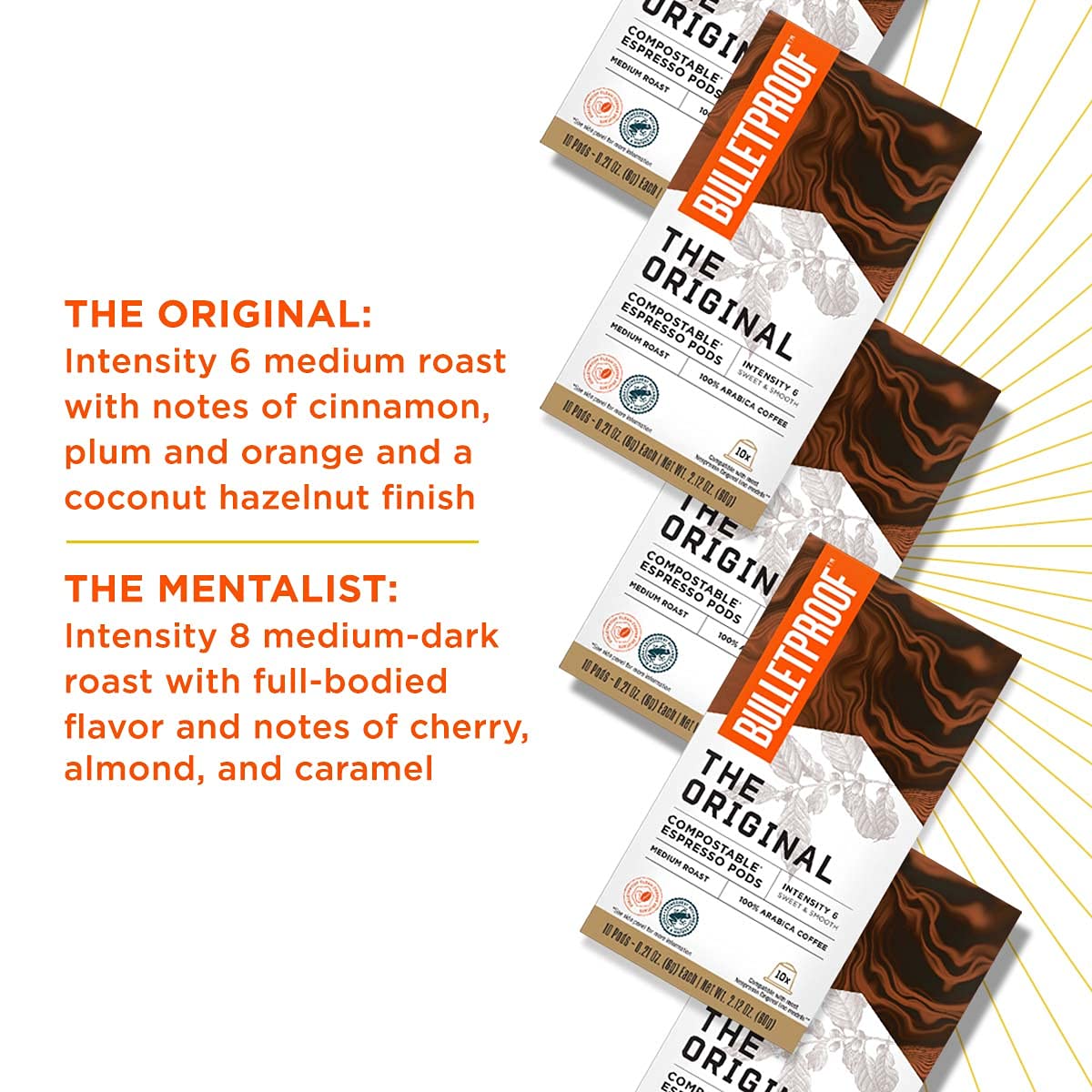 - The Bulletproof Process: Our beans are hand-picked and expertly sorted. We go the extra mile and test the coffee in Bulletproof Espresso Pods to ensure you’re only drinking the cleanest, best-tasting brew