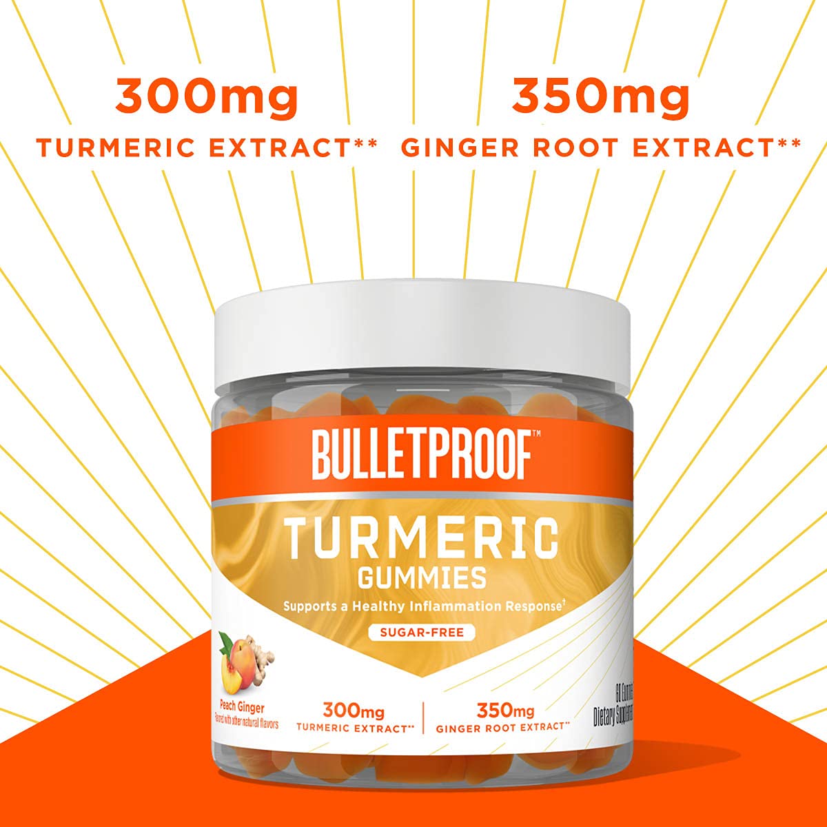 Details: Get daily inflammation support with sugar-free Bulletproof Turmeric Gummies. Turmeric Gummies benefits come from a potent blend of turmeric and ginger, ingredients that work together to support recovery and a healthy inflammation response.